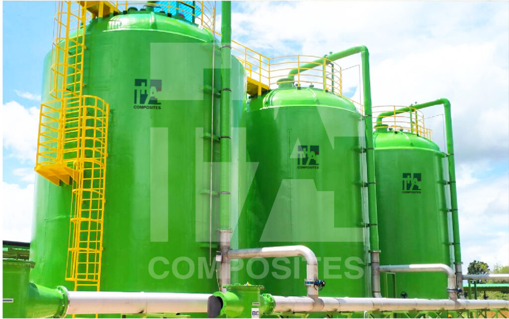 ถังไฟเบอกลาสของบริษัท มีทั้งแบบสำเร็จจากโรงงาน และแบบประกอบหน้างาน โดยแบบประกอบหน้างานใช้เวลาประกอบ 15-20 วัน บริษัท เป็นผู้ผลิตรายแรกในประเทศไทย ที่สามารถผลิตถังไฟเบอร์กลาสขนาดใหญ่ เส้นผ่านศูนย์กลาง 14 เมตร ความจุ 500 ลบ.ม. และปัจจุบันบริษัท ได้ผลิตถังฯเส้นผ่านศูนย์กลางสูงสุดคือ 20 เมตร ความจุ 1,000 ลบ.ม.