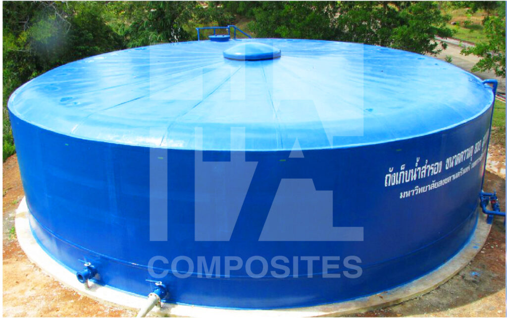 We offer both factory finished tank (for tank diameter smaller than 4m.) and in panels to do assembly at job site (for tank diameter larger than 4m.) The installation is fast which can be done in 15-20 days. We are the first in Thailand who made big fiberglass tank 14 meters in diameter, 500 cu.m. Up to now, the biggest diameter we had made is 20 meters.